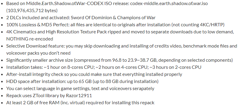 ردحذفتحميل لعبة Middle-Earth: Shadow Of War + 2 Dlcs + 4K Cinematic + Hd Texture Pack-Fitgirl Repack + Online (تورنت + مباشر)